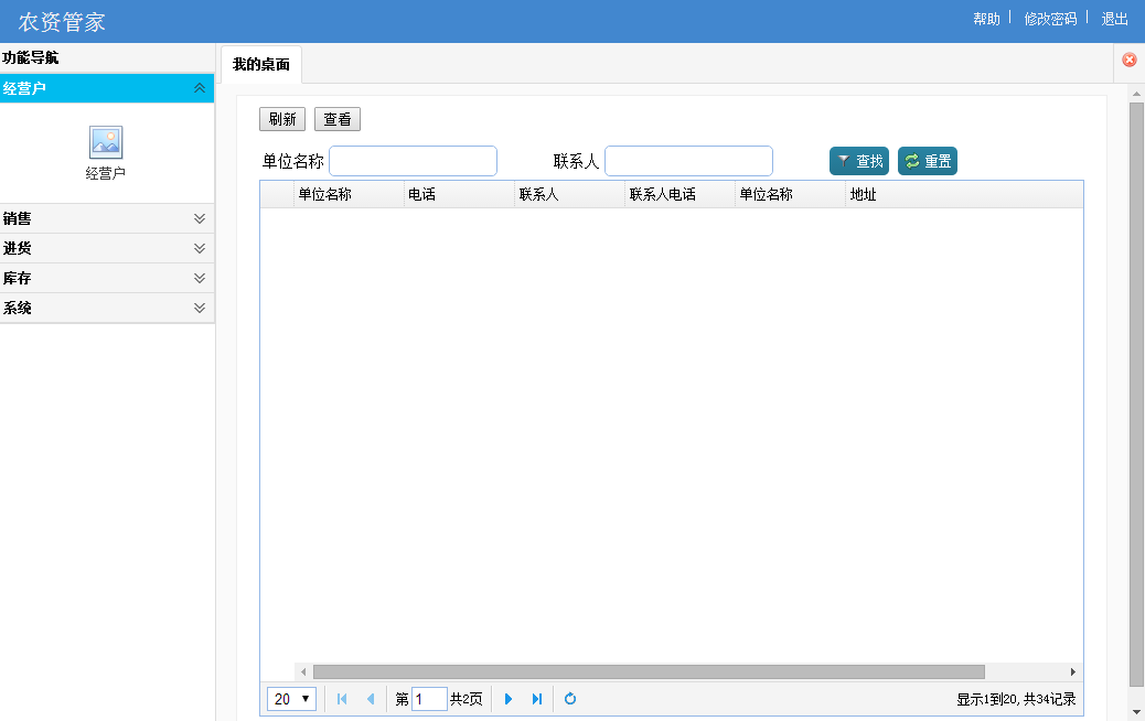 进销存台账管理系统能帮助农资经营户清楚统计农资产品的进货、销货、存货、以及资金往来账目,一键统计各个相关的所有数据,能很清晰的显现出经营的所有情况。轻松的告别手工账目,是一款真正的服务于农资产品经营户的贴身小管家。 双击经营户名称可进入该经营户的监管界面,查看该经营户的销货记录、进货记录和库存量。